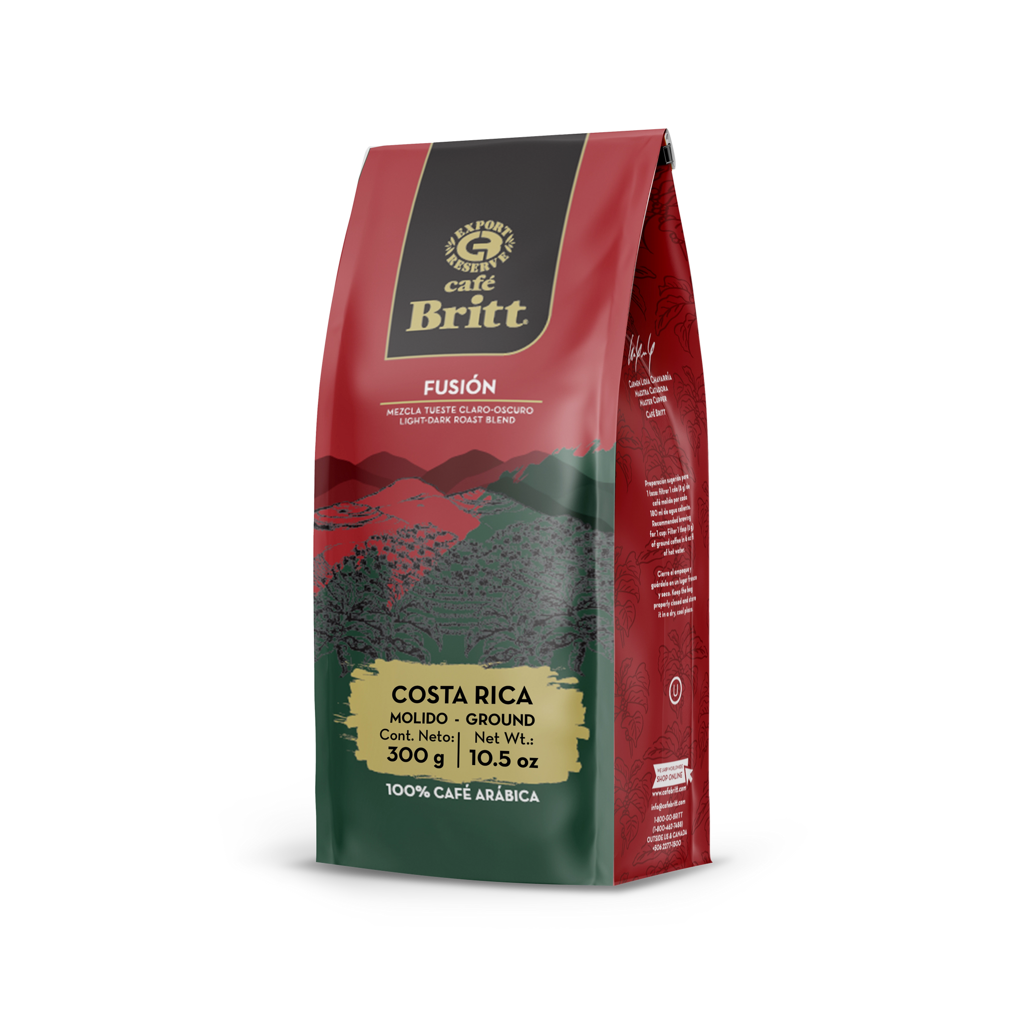 Enjoy Cafe Britt’s Costa Rica Fusion Coffee, a sophisticated drink that offers the best of two worlds: dark roast and light roast coffees. Unlike other blends, the fusion blend is combined after the roasting process. This process entails a lot of control and care, with the final result highlighting the properties of dark and light-roasted arabica beans. You’ll enjoy deep flavors and chocolatey aromas complemented by light citrusy undertones — an exquisite blend perfect for your mornings.