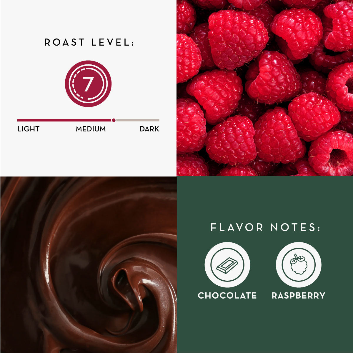 Notas de sabor: chocolate, frambuesa